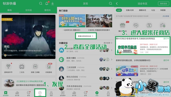 ②点击菜单栏的【发现】,在点击【查看全部活动】,进入列表后点击【爆米花商店】即可。