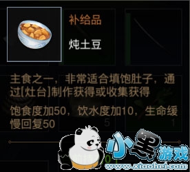 灶台升级到2级以后就可以消耗土豆制作了,这是一个非常非常重要的实物,因为他可以恢复饮水度!弥补了萌新时期做不了水井,而采集野果子不太稳定的致命缺点,是非常重要的一种食物!