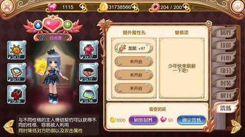 不满意属性的话,第一次可以消耗100钻重新在除已选中的属性外的三个属性内继续选,直到获得你想要的属性,但是重选次数越多消耗钻石越多哦!