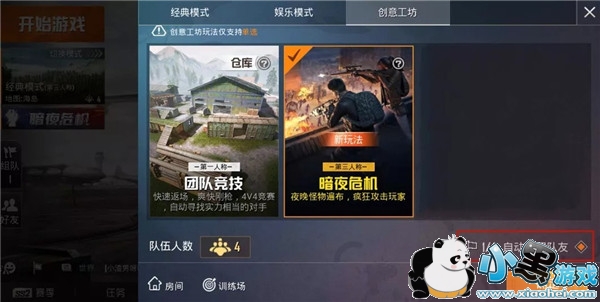 点击大厅左上角的切换模式,选择创意工坊-暗夜危机,特种兵们就能够开启新玩法啦!在这个玩法中,大家将依然保持轻松灵活的第三人称视角。