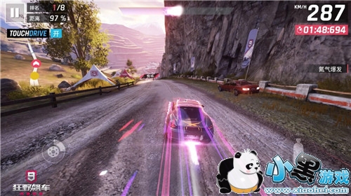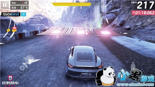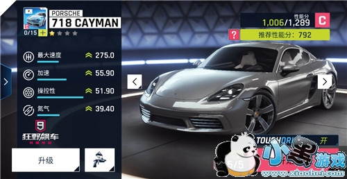 接下来就是氮气加速,所谓的氮气加速就是在有氮气的时候,喷射氮气是赛车速度超越本身最大速所设定的。在游戏中分三种加速,普通加速,完美氮气,以及氮气爆发。普通加速会使车辆在氮气释放的时间段里使速度达到车辆本身的最好速度,但完美氮气和氮气爆发则是在更短的时间里使其车速到达最大速或是超过最大速。而Porsche 718 Cayman这款车的进阶加速是超过了本身的最高速的,最高时速俨然达到了287km/h,数值是相当的可观的。