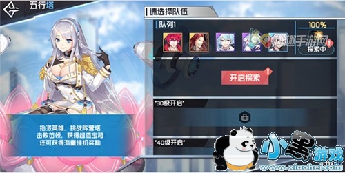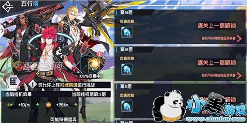 玩家们在达到20级以后就可以解锁五行塔玩法,五行塔是一个类似于远征的挂机玩法,玩家们可以选择相同阵营的角色进行关卡探索,探索结束后可获取一定的奖励。