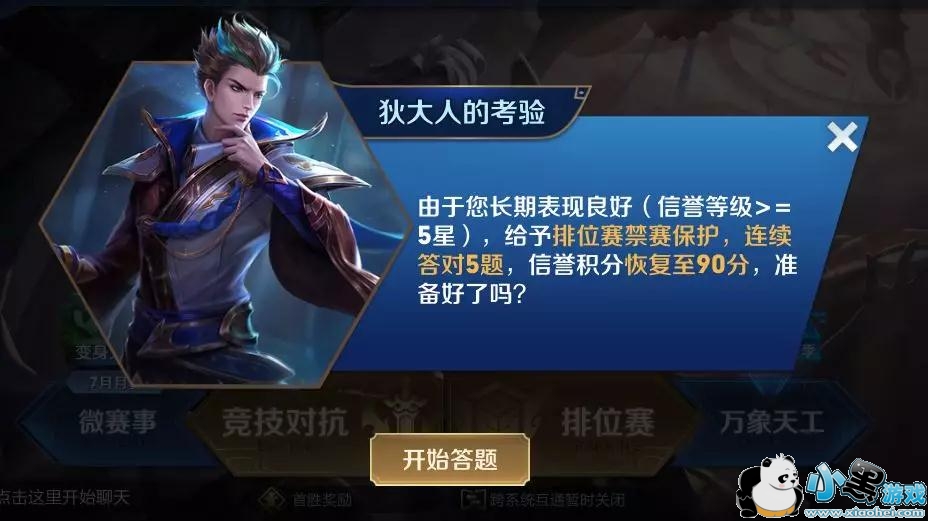 禁赛、禁止排位后增加答题流程