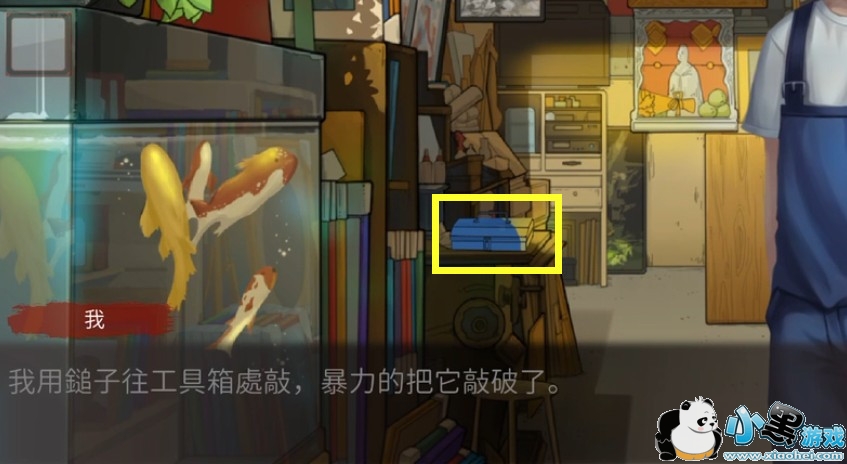 回到杂货店,提出要求把排气扇关闭,然后玩家爬上梯子将【小强】放进屋子。