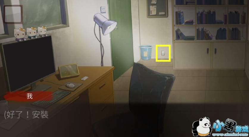 对话选择蒙混过去,然后进入丽芯办公室,把窃听器安装在如下图位置。