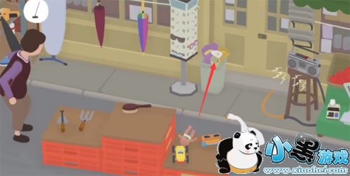 1、在商店的垃圾桶里我们能看到有一个白色的花,我们需要将这朵花叼起来带走;