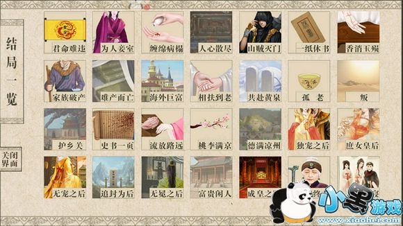 B 婚后第24年资助三皇子500w(可以府库私库合计) 婚后第30年结局。AB都符合进入结局海外巨富,AB仅符合一项,根据最终选择不同进入结局相扶到老 / 共赴黄泉 ,AB均不符合进入结局孤老
