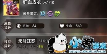 l 鲜血皮衣:叶菲主群攻伤害,恢复怒气可以更快速的触发必杀。