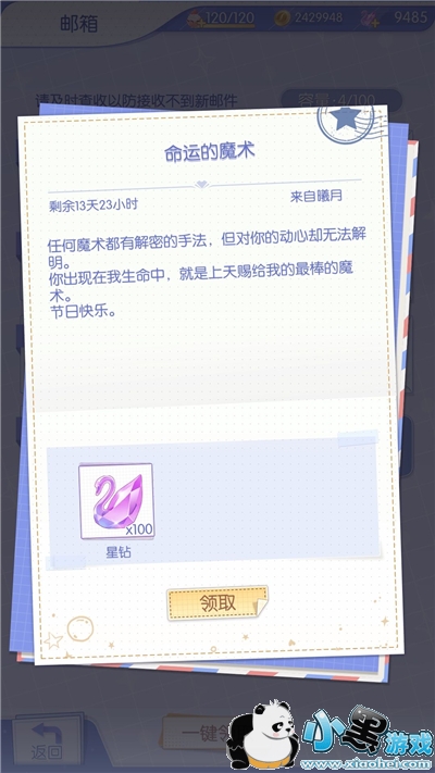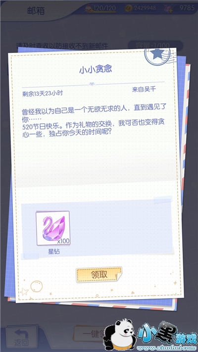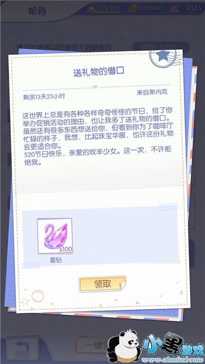 本次给大家带来的是梦间集天鹅座2020年的520活动相关内容,今年活动是每位男主都会给我们寄出一封邮件,邮件上写着对我们想说的话以及额外的100钻石,相信一定有玩家手快直接一键领取了,这里给大家附上!