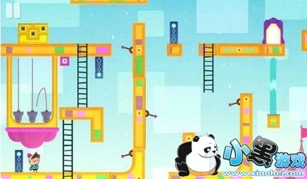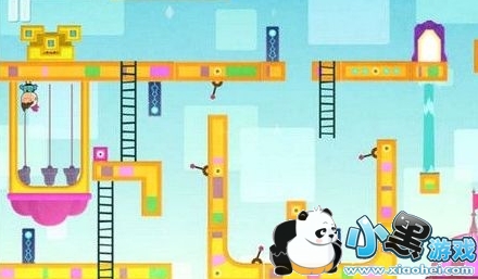 12.来到所处的人物位置,也就是可以触发铃铛的绳索下端(正视角在上方位置)。依次点击中间的绳索、右边的绳索、左边的绳索触发铃铛,即可打开宝箱。但是有一点需要注意的是,不知道玩家有没有注意到地图中有一个红色的小箱子,那个小箱子一定不能和主角在同一个水平线上,否则铃铛是触发不了的。正确做法是直接将它扔到画面下方即可。打开宝箱后,我们获得沙漏信物,原路返回通过第3关。