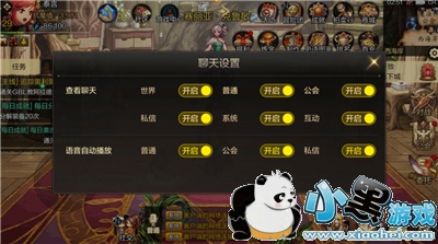 在主页面聊天框,点击右下方的设置,我们可以选择开启与关闭聊天功能,例如:我们不想看到私信,可以关闭私信功能;不想听到公会语音说话,可以关闭公会语音功能等等。