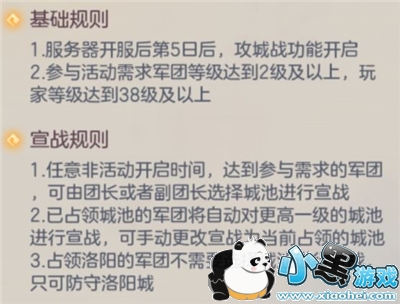 补充一点:占领龙柱5分钟直接获胜,在多团混战的情况下没有一个团能站住五分钟,防守战需要防守十分钟,所以要根据本区的情况拿捏好打下的时间什么候,争取在活动结束时占领洛阳以取得最终的胜利,这是最稳妥的办法。