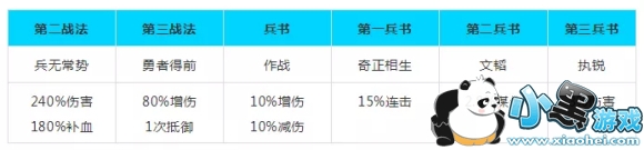 但是这个战法八回合只能发动两次,所以要想办法提升这个战法的发动次数。这就是为什么兵书要选择作战系的奇正相生和文韬,第三战法要选择勇者得前的原因了。