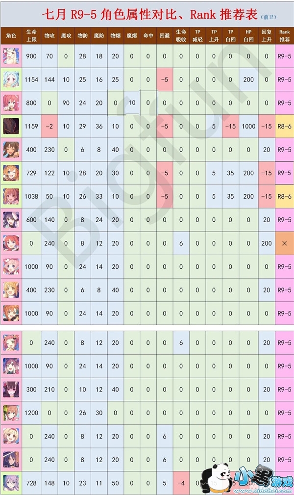 PS:角色图标底衬是粉色为:数据R9-5满强与R9-3满强的对比,角色图标底衬是金色为:数据R9-5满强与R8-6满强的对比,数据均来自兰德索尔图书馆。推荐表示根据数据,经验,个人理解得出的,不一定适用于每个人,因为升RANK过程不可逆,还请依据自身情况理性参考。