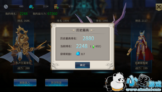 进入游戏后一路跑主线,通关普通冒险和困难冒险,领取星级奖励。尽快升级开启竞技场,竞技场初始多为占位NPC,战斗力较低,选择排名最高的打。可以看到,打一次就能获得上百钻的最高排名奖励。