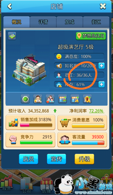 大型商铺的收入和库存都要高很多,但是不要大量去做店铺,因为这个时候如果没有相应建筑带来人流,那么就会出现店铺等级高反正收入不足的情况。而且建大量店铺之后也会出现员工不足的情况,所以建议大家一个区域最好是10左右店铺就完全够了。