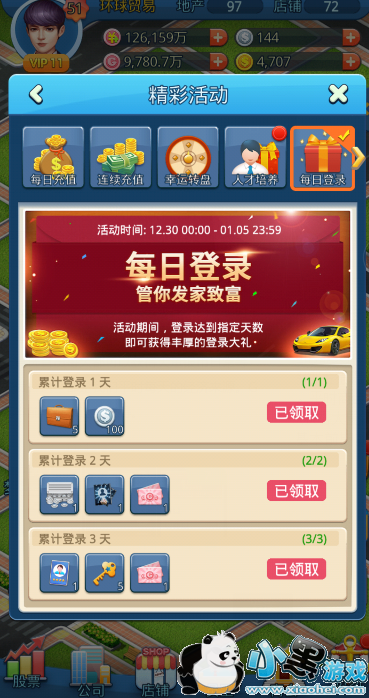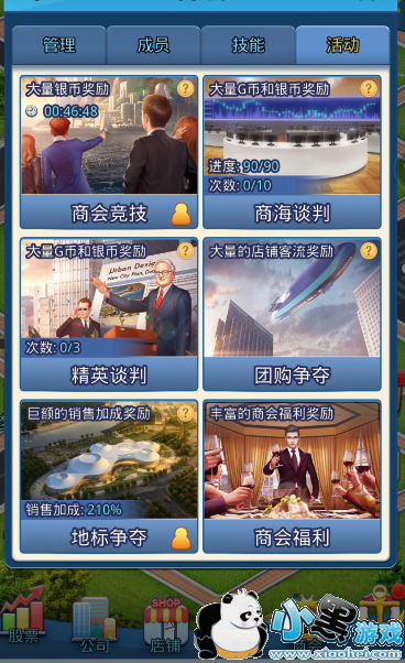 刚才我们说到三十级的时候要去卡等级,为什么呢,因为三十级这个时间段,收入高了,可以进行增资回收股份,高级贸易这个是不断跑贸易获得金卡的稳定途径,最主要是可以买绿卡碎片。而且三十级了,这个时候一定要找一个相对于人气比较旺的商会,因为商会的加成也是会影响到个人收入这一块的。比如团购和地标争夺这两项的加成是非常可观的了。