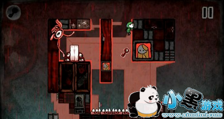 1. 进入游戏后,一直向右走,第二个场景中有道具可以吃,拆掉按钮,打开右边的路,然后从右边跳下去。