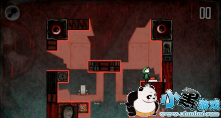 1.从中间掉下去,注意两侧的尖刺。第三个场景左侧有道具,吃完道具以后跳到右边去。
