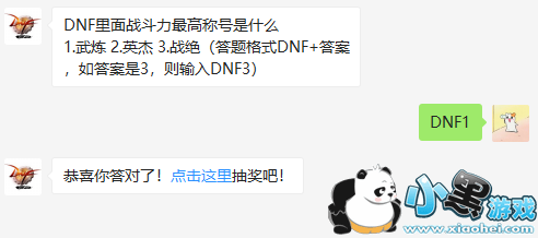 DNF里面战斗力最高称号是什么1.武炼 2.英杰 3.战绝(答题格式DNF+答案,如答案是3,则输入DNF3)又到了今天的DNF每日一题时间了,每天回答正确题目都是有机会获得抽奖机会的,玩家可以通过抽奖来获得奖励的,今天的题目其实很简单。一起来看看正确答案吧。