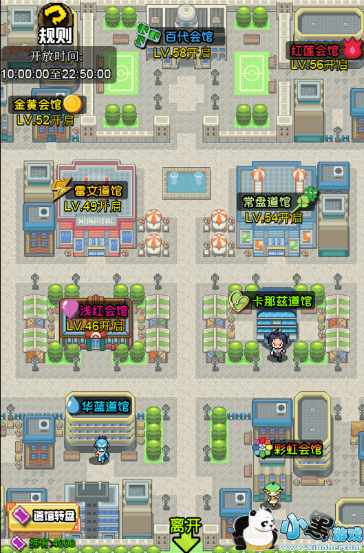 到了一定的等级,我们就可以前往丰饶地区挑战道馆,道馆每日开放时间在10点