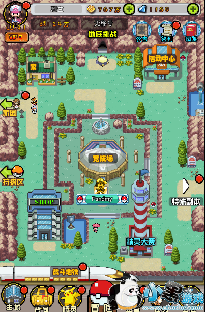 在主城这里,我们可以看到有很多地方我们可以去了。通过挑战特殊副本里不同类型的副本和地底挑战的不断闯关,玩家可以获得很多提升角色和精灵实力的道具材料,有些奖励是其他地方打不出来的,比如训练师徽章,阵型卷轴等,这些都可以极大地增强自己的精灵队伍的整体实力;喜欢PVP的玩家可以在竞技场和精灵大赛大展身手,在竞技场排名第一的话,玩家人物还会被做成黄金雕像摆在场外供人仰望,实在是太有成就感了!激烈刺激的战斗之余,玩家还可以在狩猎区、家园这些休闲玩法上放松心情,劳逸结合更让人精神抖擞!