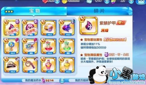 紫鳞护甲是暗夜零最爱的护盾,会使技能技能期间的表现分大幅增加,冲锋速度更快。这是一款单人模式的宝物,也是小编最推荐大家入手的一款宝物。天天酷跑中的人物一般都有很多件宝物,这些宝物之间小伙伴们要懂得合理地取舍哟,比如说都是S宝物,主要就是看满级属性的技能。类似星际少年的复活宝物这种技能型的,肯定是要优先入手的。而如果是关于得分宝物的话,那么小编是建议大家优先入手关于表现分得分的宝物哦。