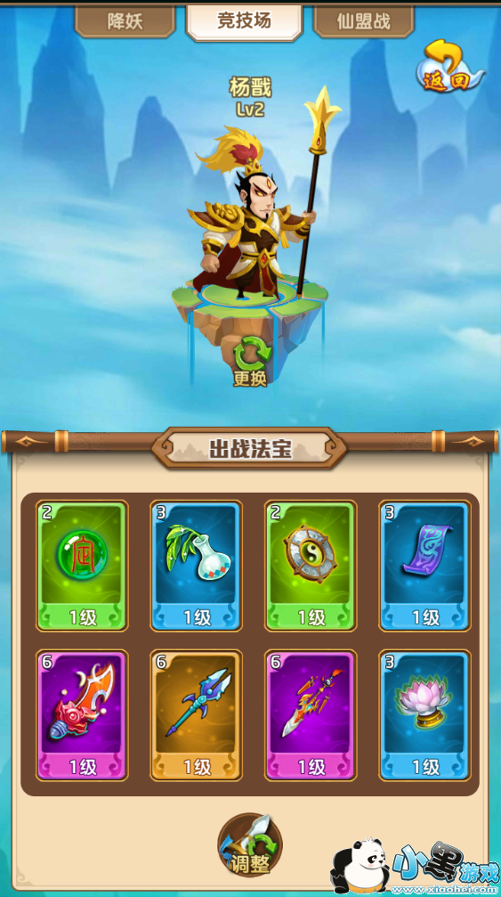 在阵容界面可以安排神将出战,以及设置竞技场所使用的法宝。