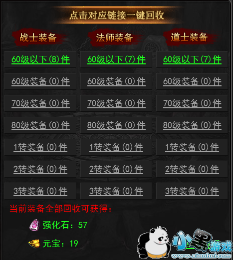 打开背包就能看到回收装备的按钮,点开,按职业等级回收不需要的装备,千万别点错。