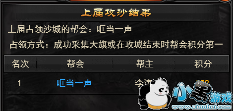 2、活动期间没有帮会采集皇旗,那么等活动时间结束之后,参与攻沙积分最高的帮会将会成为占领者。