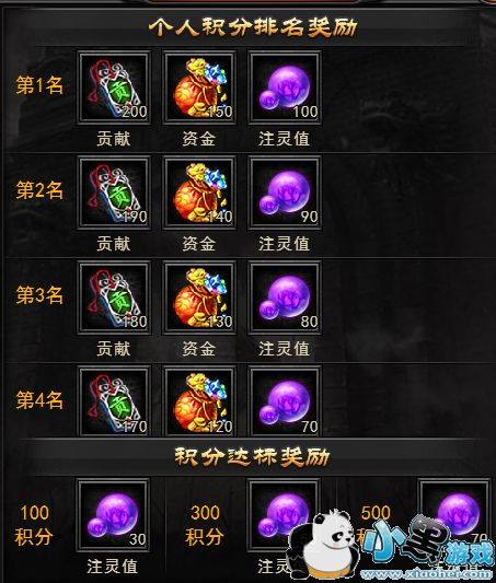 2、帮会总积分排名前3名的帮会将会获得元宝奖励。