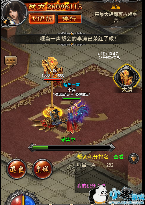 3、进入到最后一张地图,也就是皇宫的时候,玩家需要采集大旗,如果没有看到大旗请稍等,大旗需要活动开启10分钟之后才会出现,其他玩家可以攻击正在采旗的玩家,打断他的进度。