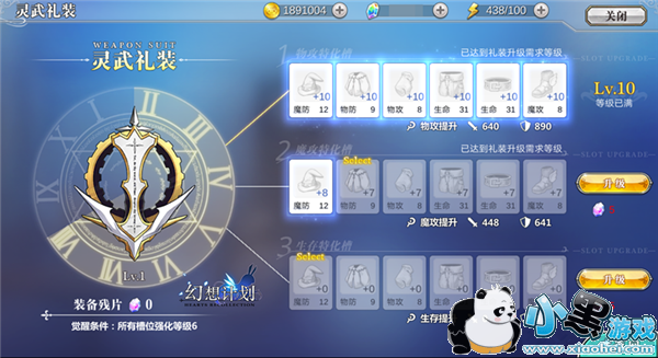 灵武礼装:使用分解装备后的碎片强化,可强化物攻、魔攻以及生存三种属性,每种属性的等级上限随角色等级变化。