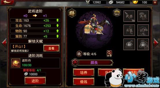 主公进入武将界面后点击想要进阶的武将可进入该武将进阶界面:
