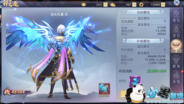提升羽翼将消耗材料“江火流莹”,提升成功能提升羽翼基本属性哦~