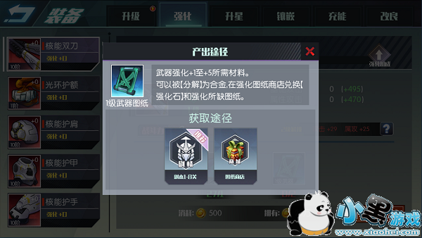 当你缺少强化材料时,可以直接点强化材料的图标来显示产出途径,
