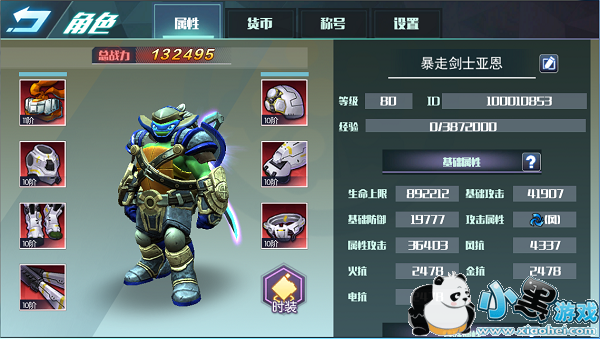 每位忍者龟都拥有7个部位的装备,分别是武器、护额、护甲、护手、护腿、腰带、护肩。各部分加的属性不尽相同,所以最好是平均培养。