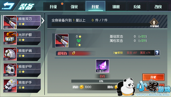 我们可以在装备升级界面对选定的装备进行升星操作。