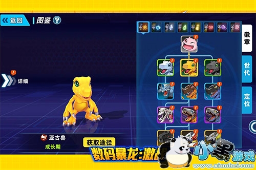 在《数码宝贝》中,吸引人的不仅是太一和几位小伙伴的冒险经历,还有数码兽进化后各具特色的外形,帅气迷人的天使兽、美丽可爱的花仙兽、酷炫霸气的战斗暴龙兽都曾经让我们为之着迷。但如果像动漫中一样,只有一条进化路线,未免太过呆板单调,《数码暴龙:激战》对此设定进行革新,创建了进化分支树,让每种数码兽都有不同的进化分支可供选择。比如亚古兽除了可以进化为战斗暴龙兽之外,还可以进化成黑暗系机械邪龙兽,丰富游戏趣味性的同时,还满足了收集控的各种需求。