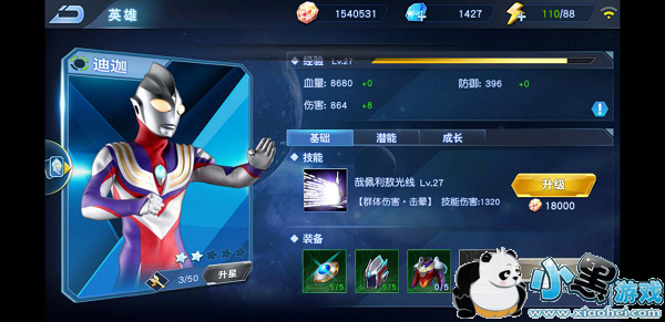 装备这个东西在每个游戏里面都是必不可少的,只是以不同形式出现,而装备的更新进阶进度直接就关系到副本能不能打过了,每个奥特英雄都有四件装备可以获取,会根据你的副本进度和前一阶段装备的升星进度来陆续开放,每件装备都有五次升级的次数,每次升级会提供额外的属性。