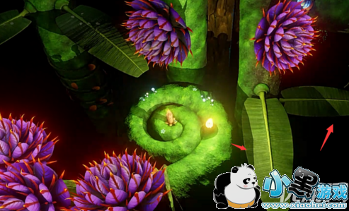 此关最难的地方在于跳树叶,如果灯不打亮,很难发现树叶可以跳过去,而且树叶跳的时候需要自己的预判,途中还有刺花相刺,抹黑前行,行路不易。
