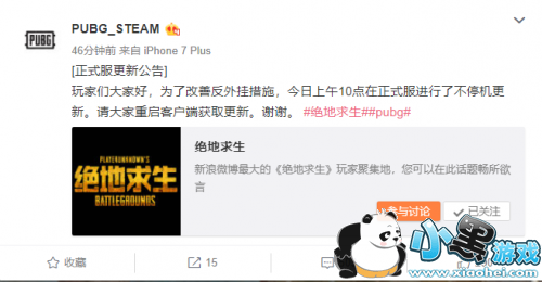 蓝洞工作人员在Reddit也发布了补充说明:这是一次反作弊更新。我们将首先发布这个版本然后看看反外挂机制的运行情况。请大家把体验反馈给我,我会告诉开发团队的。