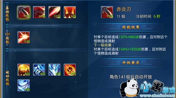 赤炎刃:对单个敌人造成百分比+固定伤害,并能溅射附近的敌人,冷却时间6秒。