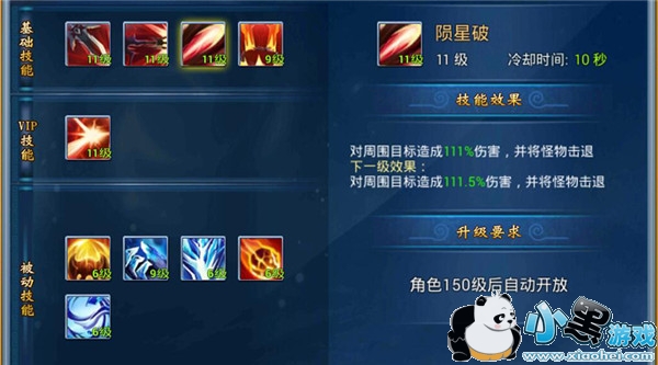 陨星破:对周围目标造成百分比伤害,并将怪物击退,冷却时间10秒。