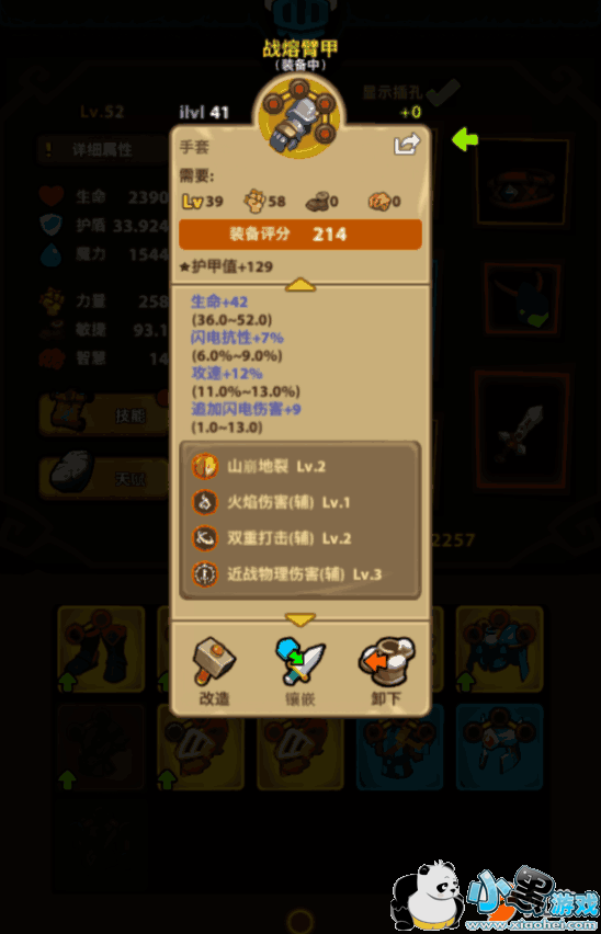 手套带攻速,生命,火焰伤害或者带生命偷取击中回复。