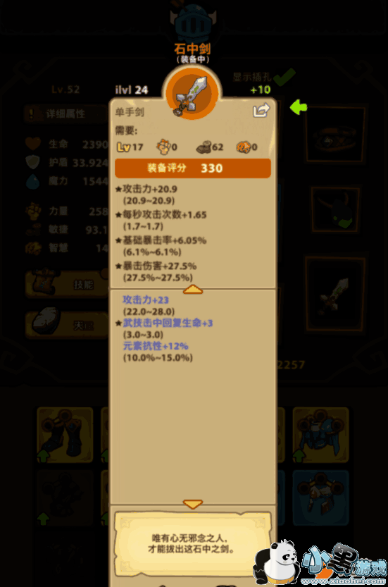 单手剑看自己流派搭配,我这里依然还是石中剑补抗。