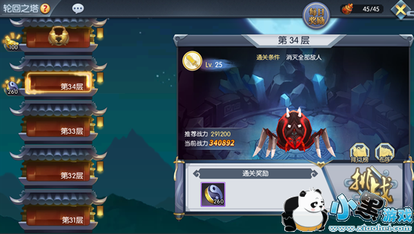 每天会按玩家通关最高层数情况发送一份奖励(道行),通关层数越高奖励越多。请大家努力通关更高的层数吧。