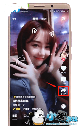 第一步:当你在抖音中看到你喜欢的短视频,可以点击页面右边的【分享】按钮;