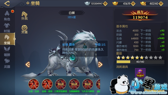 坐骑:霸体技能效果:受到BOSS的伤害永久降低10%
