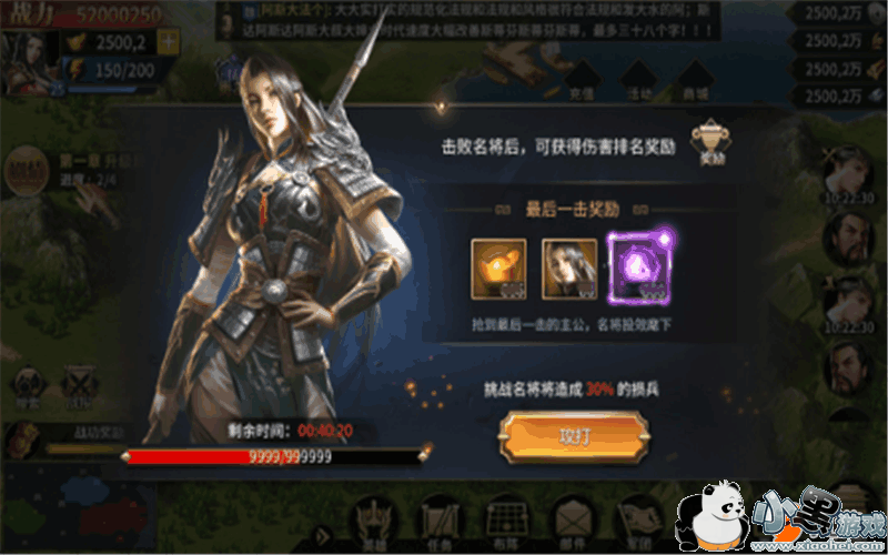 名将界面中,玩家可看到具体奖励内容,BOSS剩余血量,可根据血量选择出兵的时机